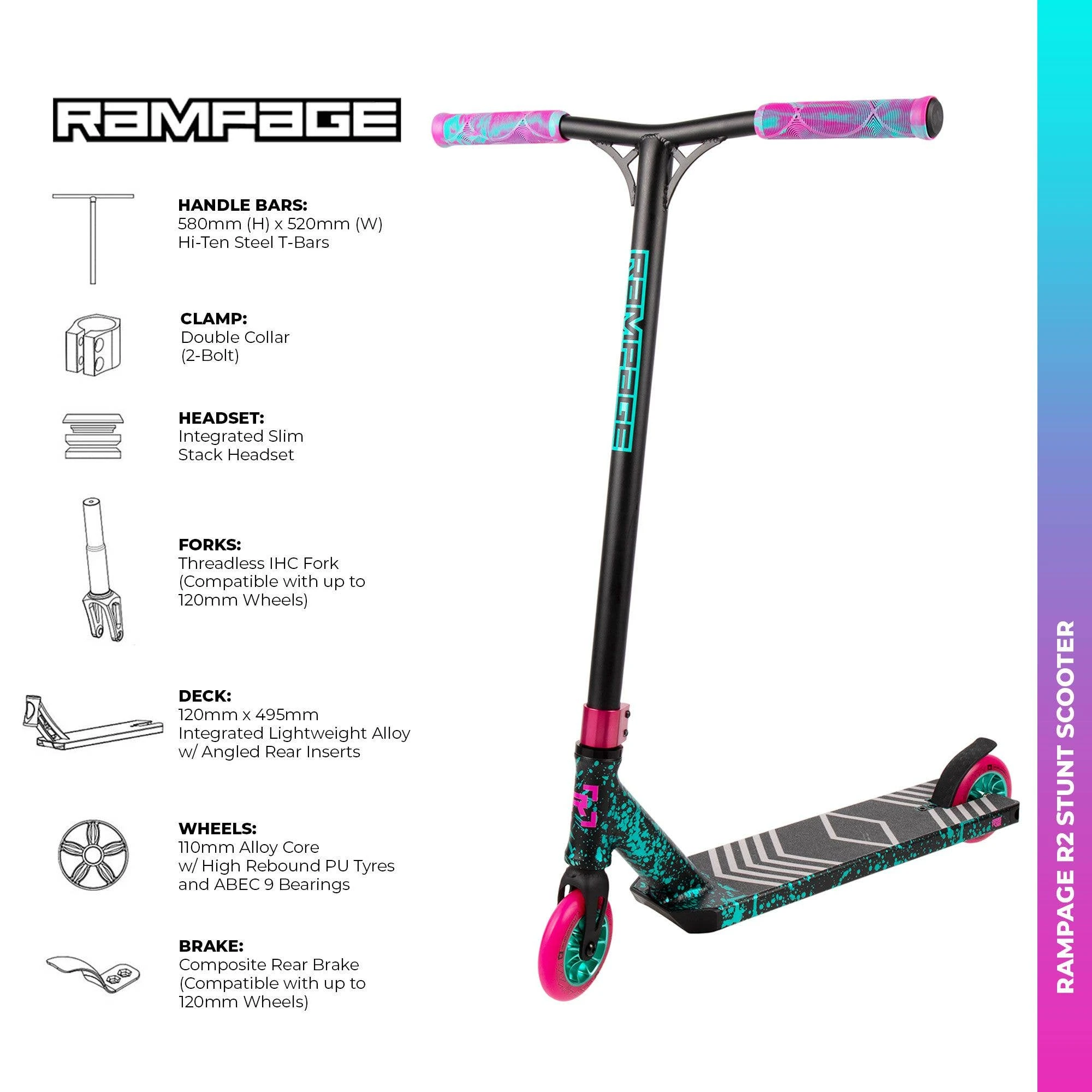 Rampage R2 Stunt Scooter – Ano Splat Teal